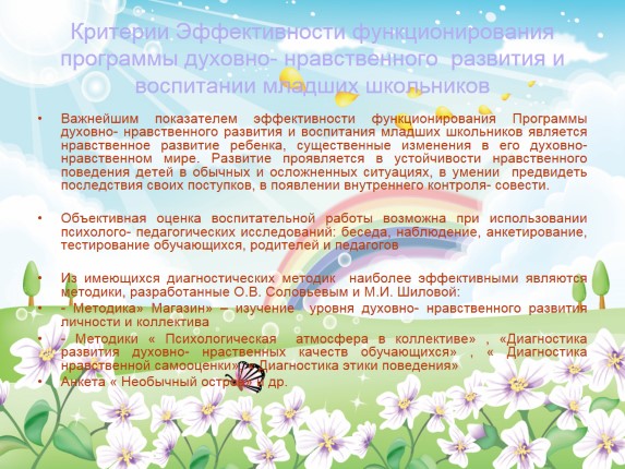 Критерии эффективности функционирования программы духовно- нравственного развития и воспитания младших школьников