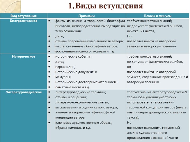 Виды вступления