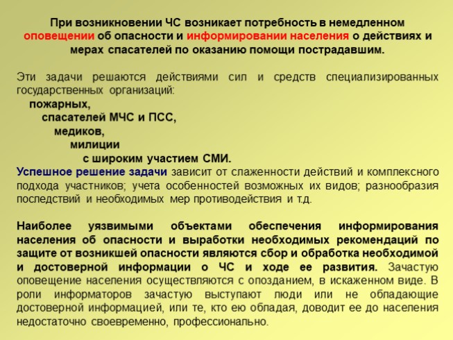 выявление зон загрязнения, оценка масштабов и характера возникшей ЧС и оповещение о ней;