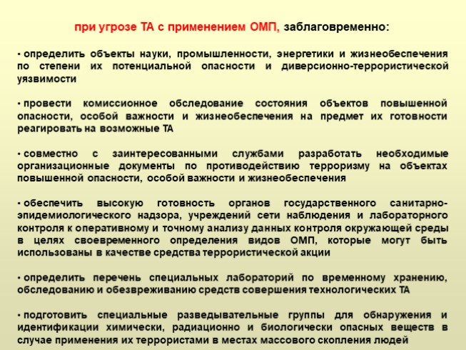 предупреждению терроризма, в том числе по выявлению и последующему устранению причин и условий, способствующих совершению ТА (профилактика терроризма);