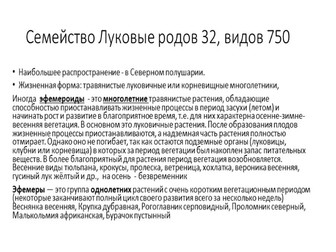 Семейство Луковые родов 32, видов 750