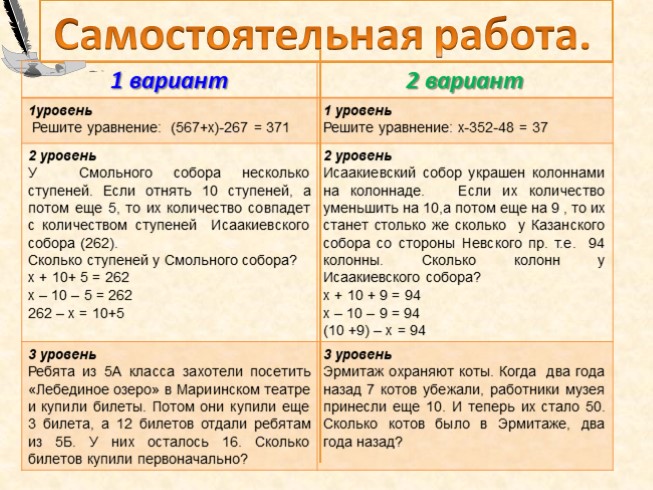 Решите уравнение: (567+х)-267 = 371 1 уровень
