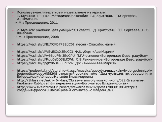 https://pedportal.net/starshie-klassy/muzyka/quot-dva-muzykalnyh-obrascheniya-k-bogorodice-quot-958298 открытый урок по теме "Два музыкальных обращения к Богородице» Абясова Наталия Владимировна