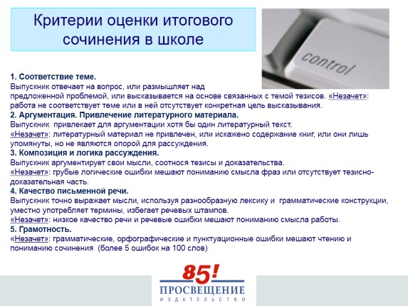 Критерий 5 «Грамотность» не являлся обязательным. Выпускники имели право пользоваться орфографическим словарем.