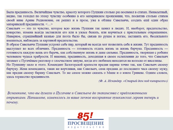 Прочитайте два отрывка — высказывания писателей 20 века о героях «Капитанской дочки» А. С. Пушкина.