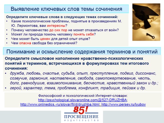 Определите смысловое наполнение нравственно-психологических понятий и терминов, встречающихся в формулировках тем итогового сочинения: